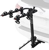 - Heavy-duty rack mounts on 1.25-inch hitch, holds 4 bikes